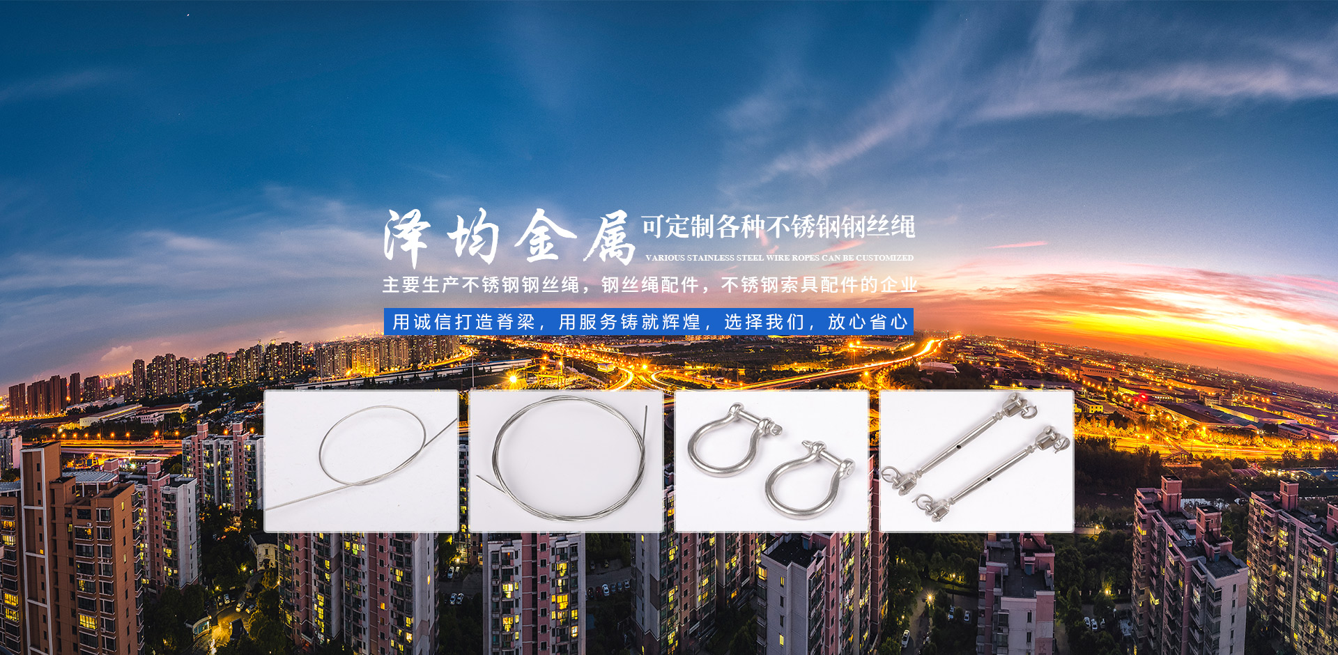 我公司生產(chǎn)不銹鋼鋼絲繩,鋼絲繩配件,不銹鋼索具配件等,是一家集研發(fā)、生產(chǎn)、銷售、售后為一體的綜合性企業(yè)。